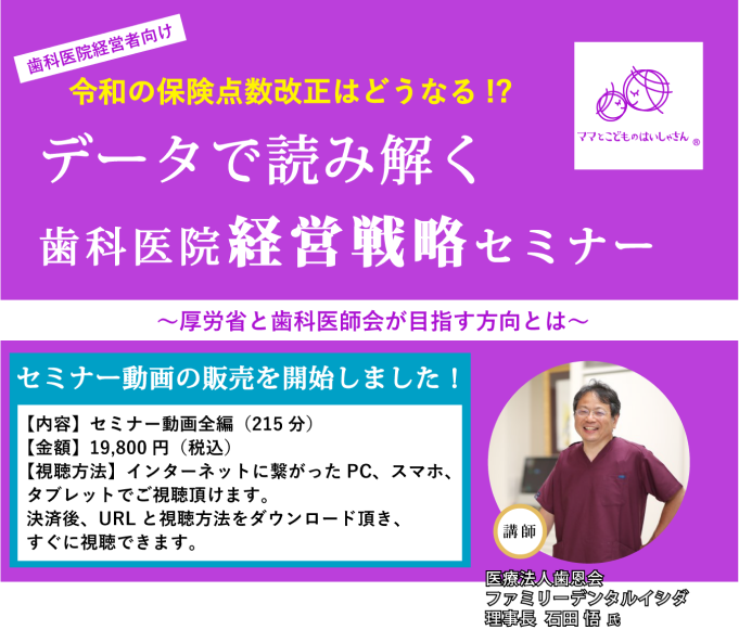 保険点数改定の具体的な内容をお話します。また、今回の改定だけでなく、厚労省と歯科医師会が今後目指す方針を理解することで長期視点での経営戦略を立てることができます。